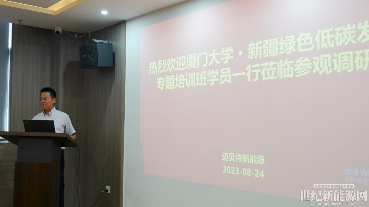 8月24日下午,廈門大學 · 新疆綠色低碳發展專題培訓班領導一行到訪邁貝特調研考察。由自治區農業農村廳黨組成員、副廳長李晶領頭的新疆各地區市縣級領導們及其余班級成員等50余人與邁貝特高層團隊進行訪談交流,邁貝特董事總經理李良邦、總工黃國珍等高層團隊接待了各位領導。