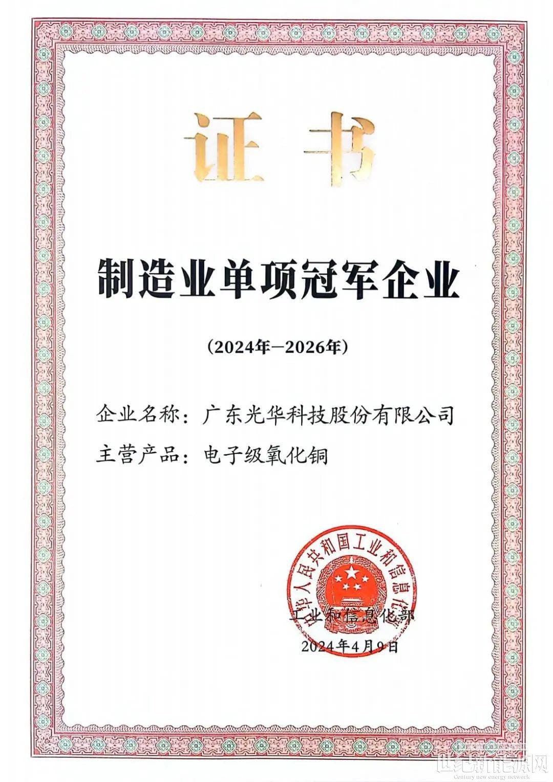 光華氧化銅:國家單項冠軍 引領高端應用