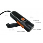 產品介紹: 1.夜光效果,黑夜易找易取 2.手搖發電,無需電源適配器充電 3.環保LED照明燈,警報功能適合緊急求救 4.高靈敏度AM/FM收音機 5.可供不同手機及數碼產品充電 產品規格: 1.材質:ABS、PS 2.LED燈的規格:¢5; LED的亮度:8000~12000MCD; 3.電池類型:鋰電3.7v 300mah 4.手搖1分鐘(120轉/分鐘):a)照明可用20分鐘, b)手機接聽可用20-30秒,待機可達10-15分鐘.