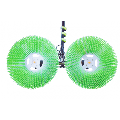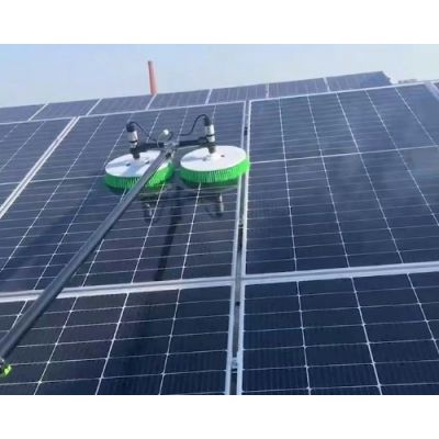 2:左右兩個光伏清洗刷洗組件,清洗寬度可達700毫米左右,拖洗方便,默認帶水管,可實現干洗水洗兩種模式,清洗每天可達5000平方米,單鋰電供電可以持續工作超過4小時(實際可達5個半小時)。