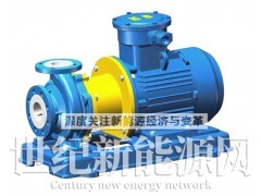 IMC氟塑料磁力泵產(chǎn)品概述: IMC氟塑料磁力泵是在老型氟塑料磁力泵制造經(jīng)驗(yàn)研發(fā)的大功率高揚(yáng)程磁力驅(qū)動(dòng)泵 ,外型及安裝尺寸均按ISO國(guó)際標(biāo)準(zhǔn)設(shè)計(jì)制造,整體結(jié)構(gòu)采用電機(jī)直聯(lián)的后拉式,由中間支架支撐,結(jié)構(gòu)緊湊,拆卸維護(hù)方便,性能范圍寬;傳遞扭矩的磁鋼選用先進(jìn)的稀土材料永磁體—“釹鐵硼”制造內(nèi)外磁體,使用最新型非金屬材料內(nèi)襯F46制成的隔離套組合具有高強(qiáng)度的力學(xué)性能,徹底消除了一般磁力泵具有的磁渦流損耗,提高了整機(jī)的效率。可輸送高濃度,密度大于1.84 t/m3的強(qiáng)腐蝕介質(zhì);主要部件采用鋼襯F46,泵體強(qiáng)度高,能耐所有強(qiáng)酸、強(qiáng)堿的腐蝕。特別適合于輸送易燃、易爆、有毒、有揮發(fā)性、大比重的化學(xué)介質(zhì)。現(xiàn)已批量投放市場(chǎng),在很多項(xiàng)目上替代了進(jìn)口磁力泵,受到用戶的廣泛好評(píng)。